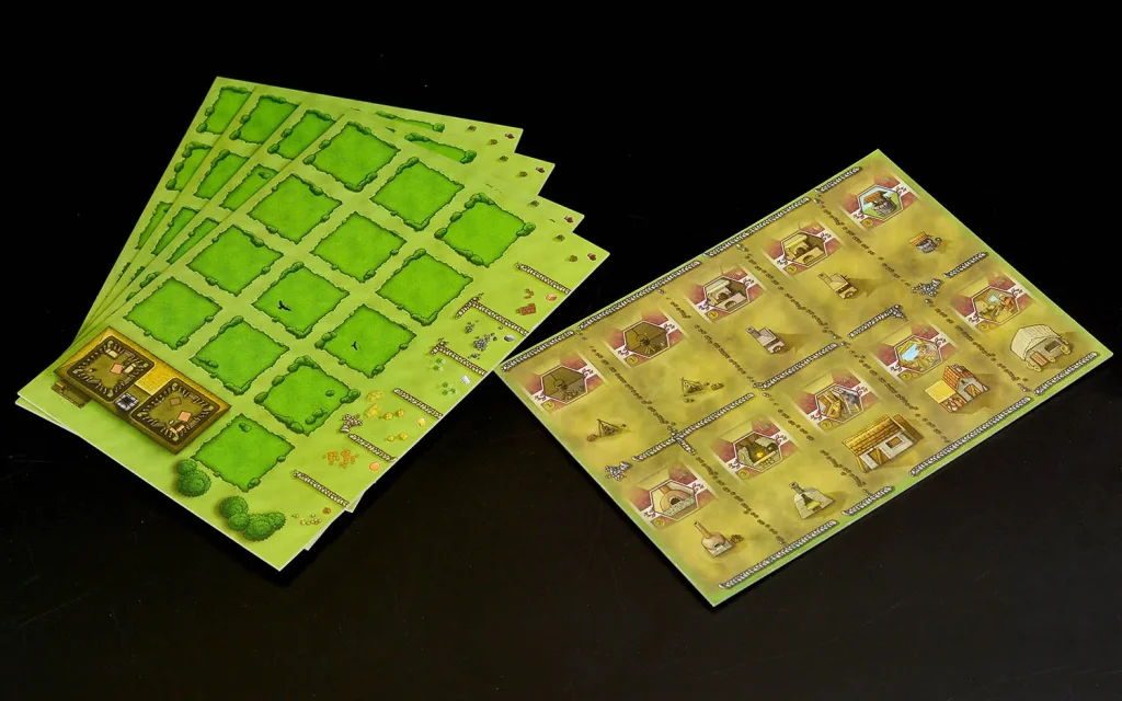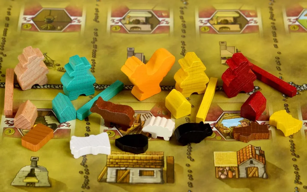 Более 270 деревянных фишек (ресурсы, животные, заборы, жетон первого игрока и др.).