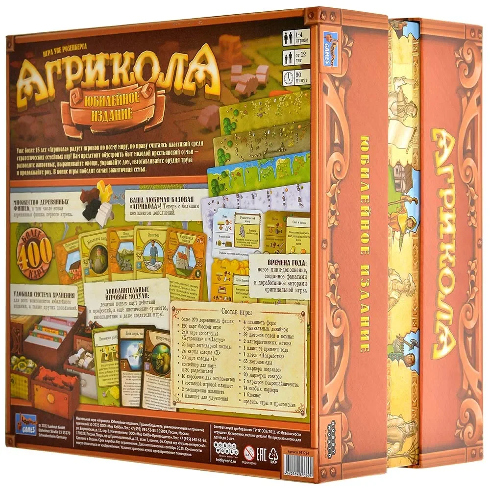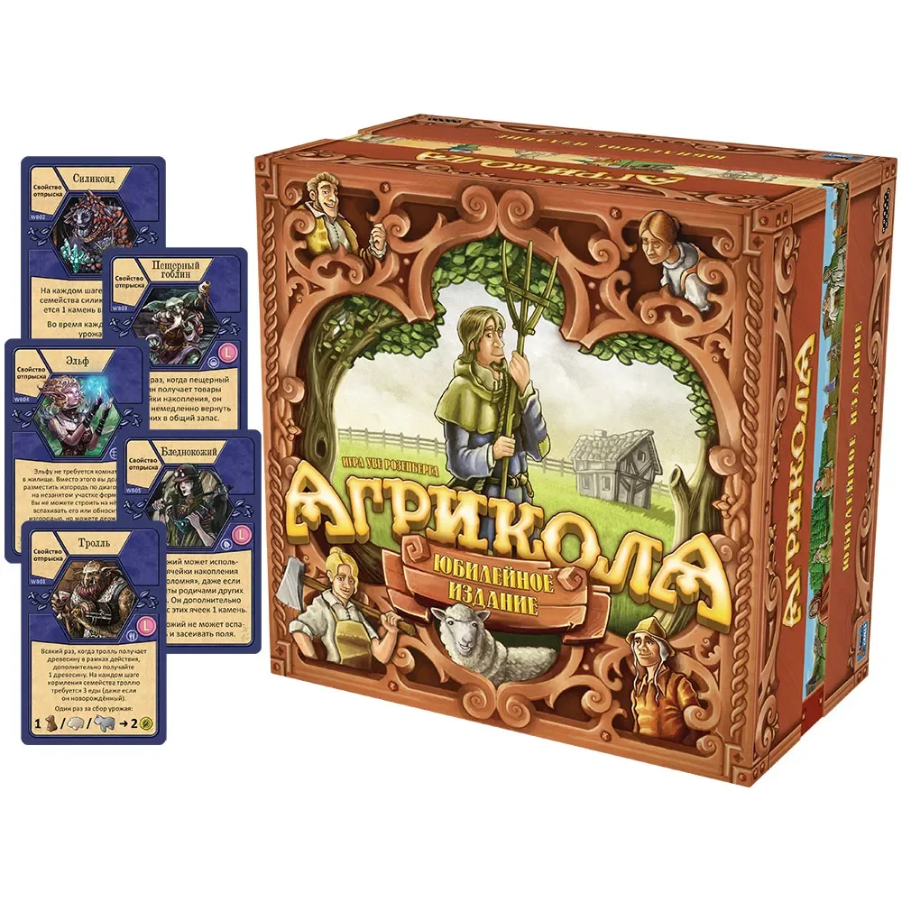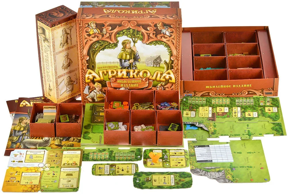 «Агрикола. Юбилейное издание» – роскошная версия культовой евро‑стратегии Уве Розенберга, подготовленная к 15‑летию игры и собравшая в одной коробке переработанную базу и объёмный набор дополнений. За партией вы управляете крестьянской семьёй, развиваете ферму, разводите животных, выращиваете овощи и зерновые, расширяете дом и стараетесь к концу игры привести своё хозяйство к максимальному процветанию.
