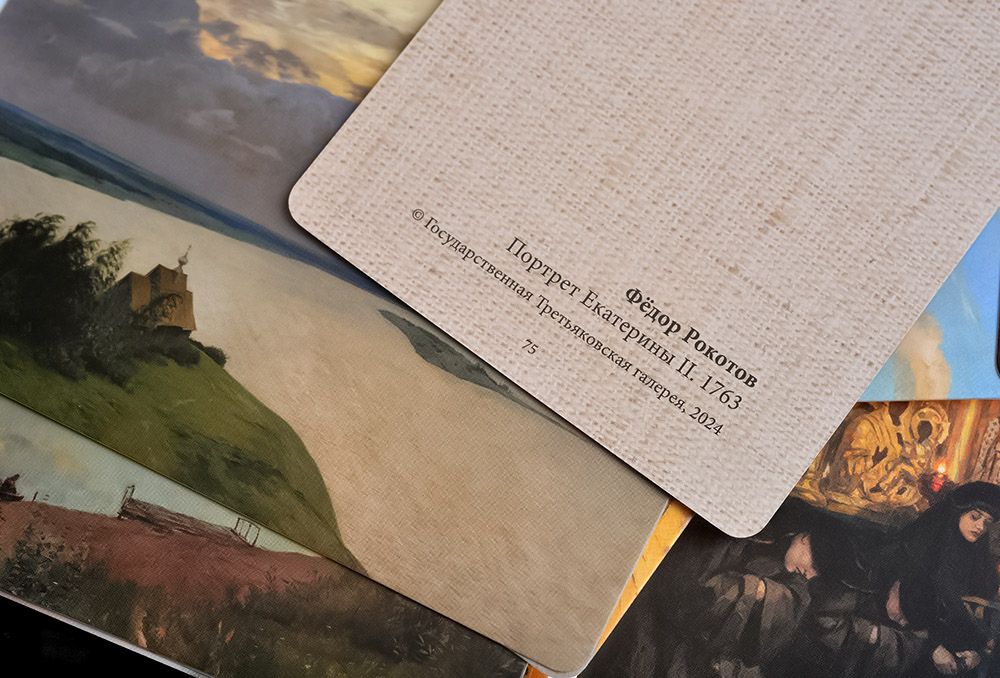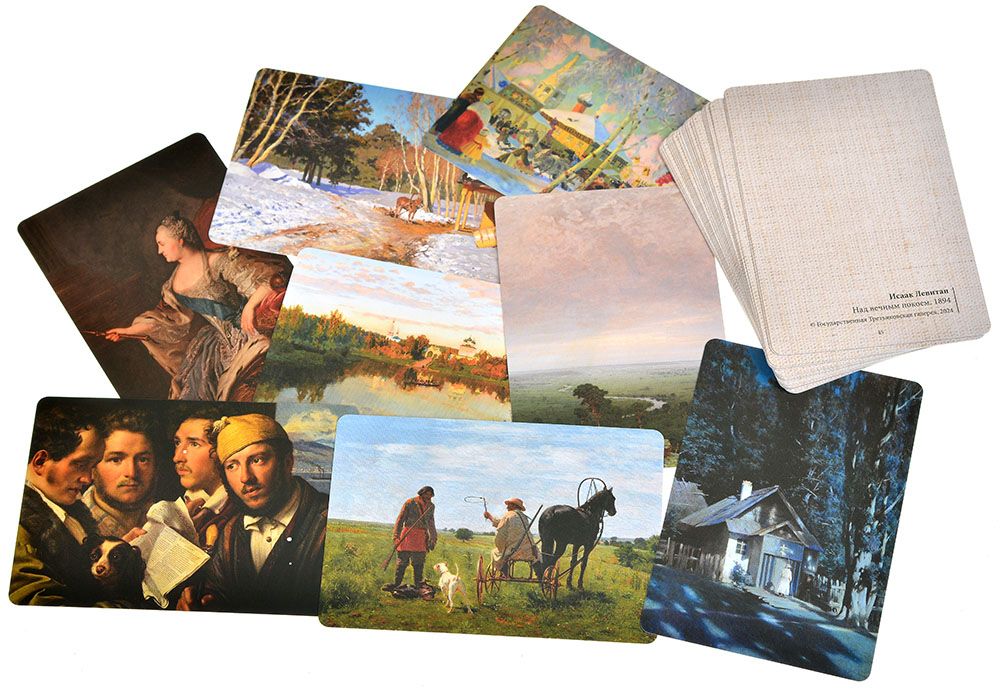 • 96 уникальных картин – на каждой карте изображена отдельная репродукция из коллекции Третьяковской галереи.