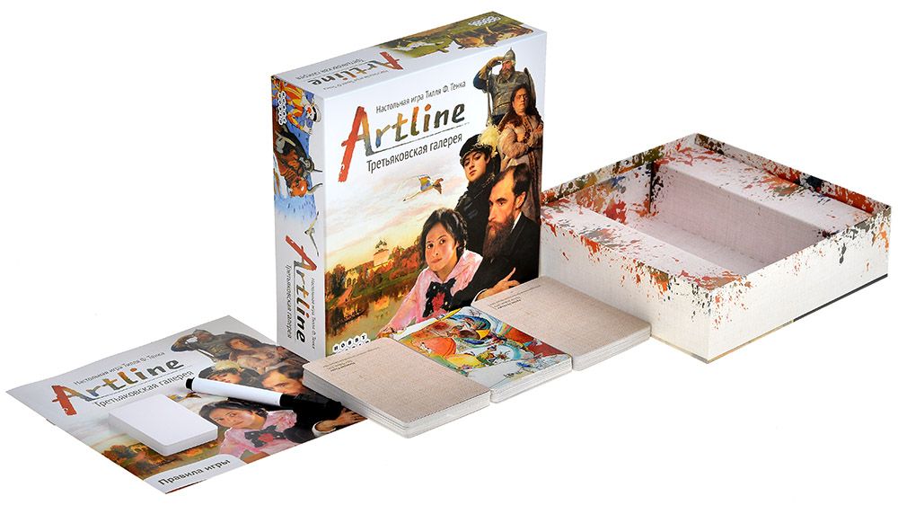 Artline: «Третьяковская галерея» – ассоциативная настольная игра, в которой ваши подсказки и тематика выставок строятся вокруг реальных полотен из коллекции Государственной Третьяковской галереи. Здесь не нужно быть искусствоведом: достаточно внимательности, наблюдательности и немного фантазии. Вы будете открывать «галереи» – ряды картин, объединённых общей темой, и подбирать к ним новые картины так, чтобы они подходили сразу к нескольким темам одновременно.