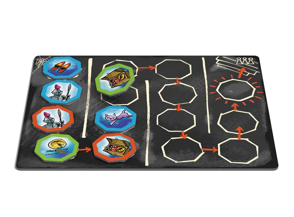 - Бросайте два кубика — голубой для движения магов, кубик призраков для вращения колеса
