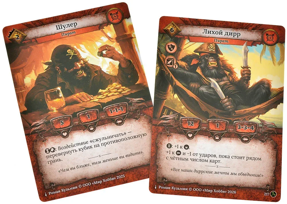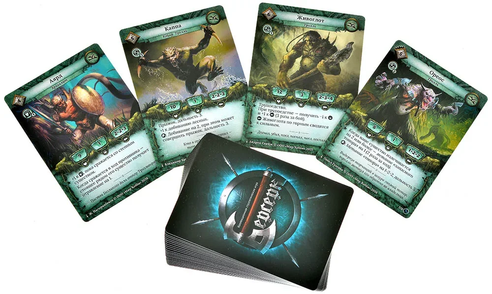 В комплект стартового набора входят не только карты, но и всё необходимое для отслеживания происходящего на поле. Вы получите жетоны ран и эффектов, кубик, а также памятку с таблицей ударов, которая помогает быстро интерпретировать результаты бросков — особенно полезно для новичков и тех, кто давно не играл. Правила, вложенные в коробку, поясняют базовые механики «Берсерка», структуру хода и особенности работы карт сета «Гибель богов», так что можно начать игру, просто распаковав набор и прочитав буклет.