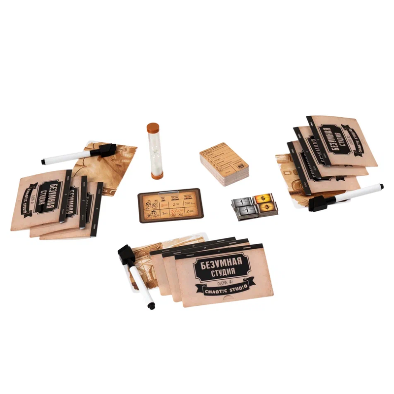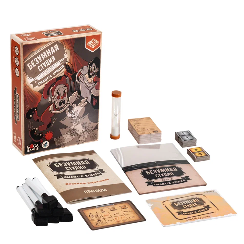 «Безумная студия» — динамичная и слегка хаотичная рисовательная игра для компании, в которой вы примерите на себя роль художников-аниматоров и будете создавать мультяшные раскадровки. В анимационной студии царят творческий беспорядок и лёгкая паника: дедлайны поджимают, кадры перепутаны, а от вас требуют шедевров здесь и сейчас. Каждый игрок получает набор прозрачных планшетов и маркер и должен не просто нарисовать картинку, а разделить её на три части, которые потом сложатся в цельный сюжет.