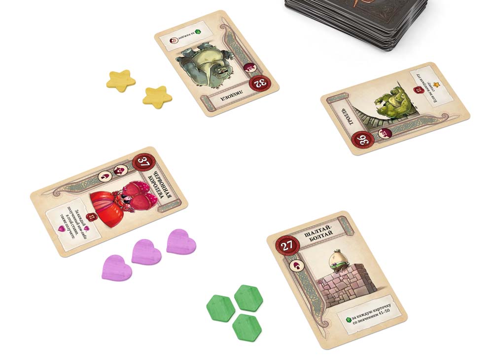 • Игровые карты персонажей — 50 шт., с числовыми значениями силы и уникальными способностями.​