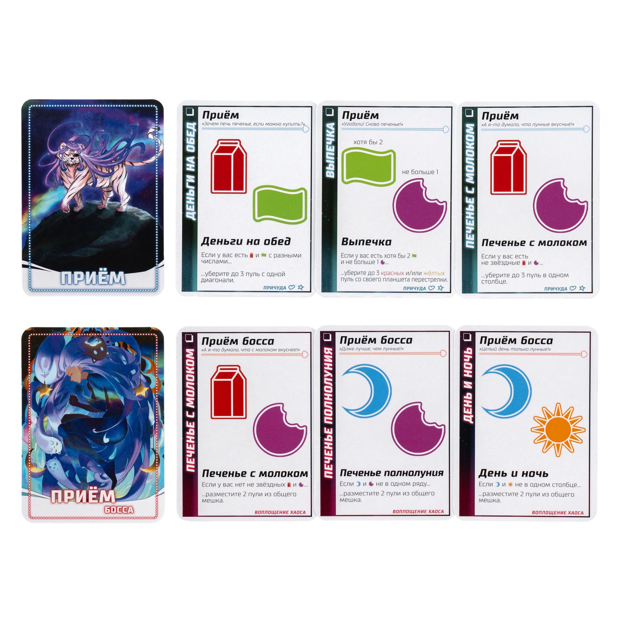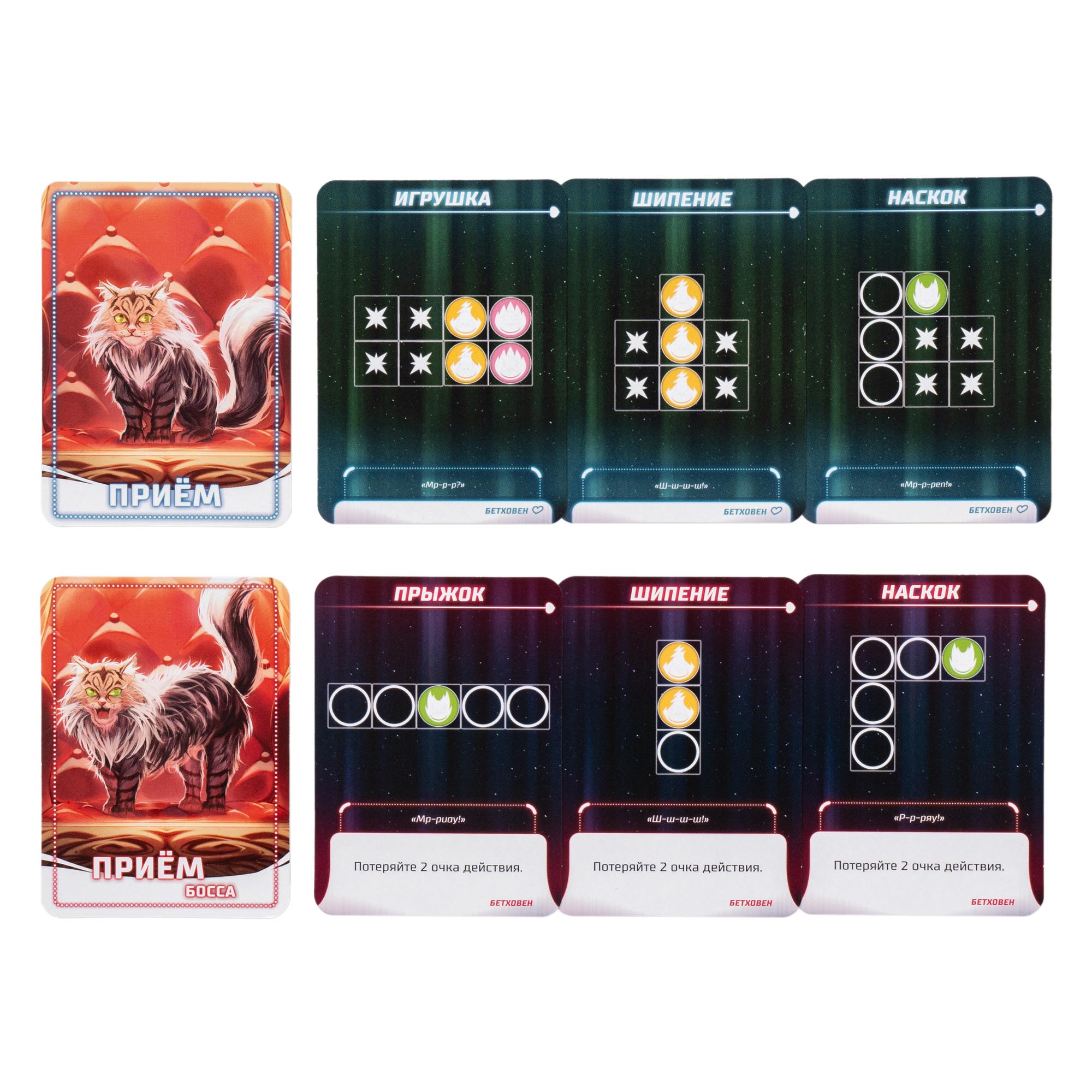 - Бетховен — один раз за раунд может использовать карту приёма, игнорируя его условия