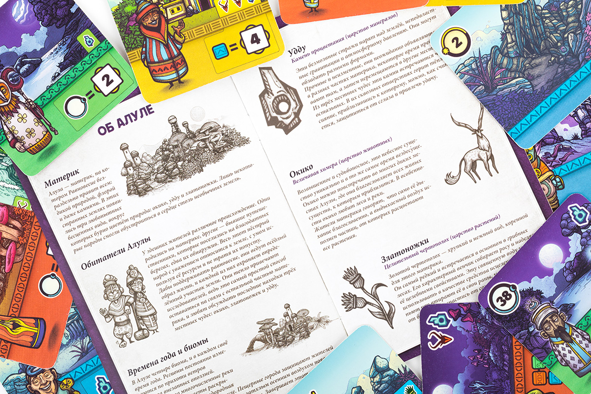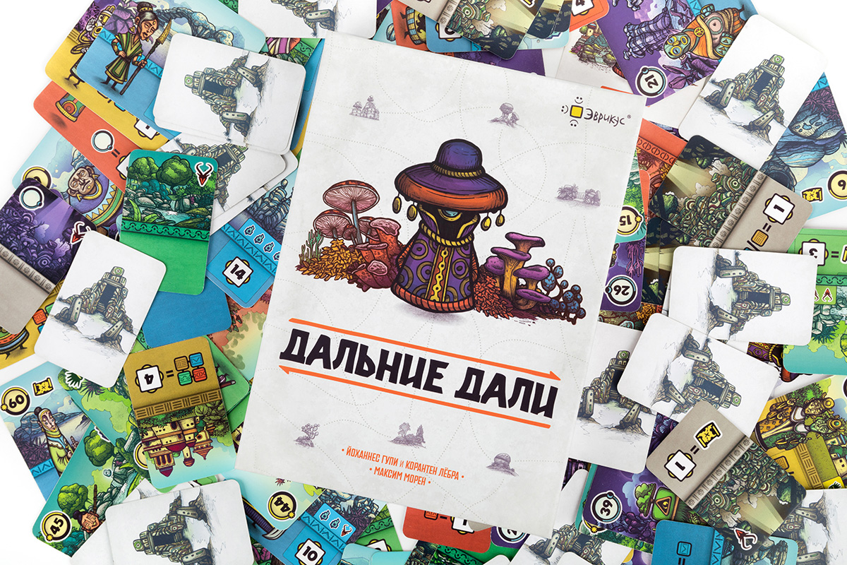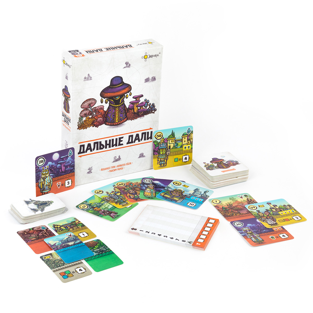«Дальние дали» — это необычная карточная игра, простая и сложная одновременно. Вы познакомитесь с удивительным континентом Алула, придуманным создателями игры. Вы разыграете перед собой 8 карт, показывающих ваш путь и встреченных вами жителей, которые дают вам задания на поиск определенных ресурсов. Карты вы выкладываете последовательно слева направо, а подсчёт очков в конце игры ведётся справа налево - вы возвращаетесь назад и жители, чьё задание вы выполнили, награждают вас — придётся хорошенько подумать.