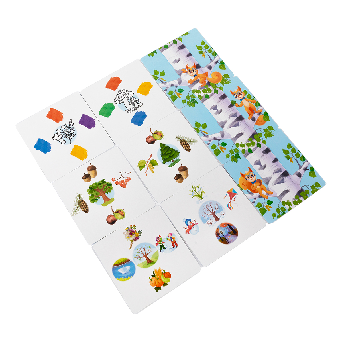 • На обороте карт — поля для проверки ответа с изображением белки‑маскота.​