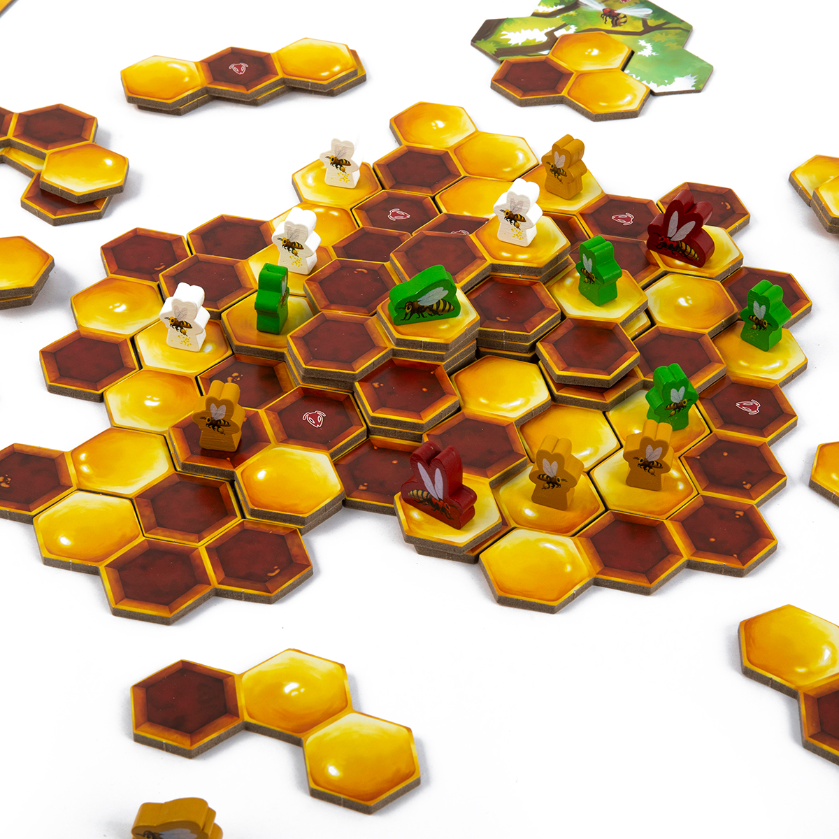 Тайлы содержат разные типы ячеек: обычные соты, места для мёда, клетки с цветами и специальные позиции для шершней. После добавления тайла игрок может разместить своих рабочих пчёл на свободных ячейках, стараясь занять клетки, которые принесут максимальное количество очков к концу партии. Важную роль играют шершни: при определённых условиях игроки могут передвигать их по улью, угрожая чужим рабочим пчёлам и мешая планам соперников.