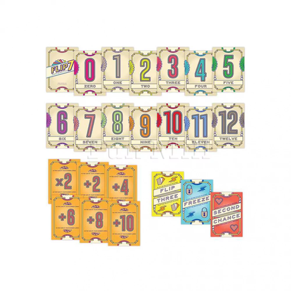 Flip 7. Второе издание — стремительная карточная игра в жанре «испытай удачу», где вся партия строится на том, как долго вы осмелитесь продолжать открывать карты. Правила объясняются за пару минут: в свой ход вы переворачиваете карты из общей колоды одну за другой и решаете, остановиться и забрать очки или рискнуть и открыть ещё.