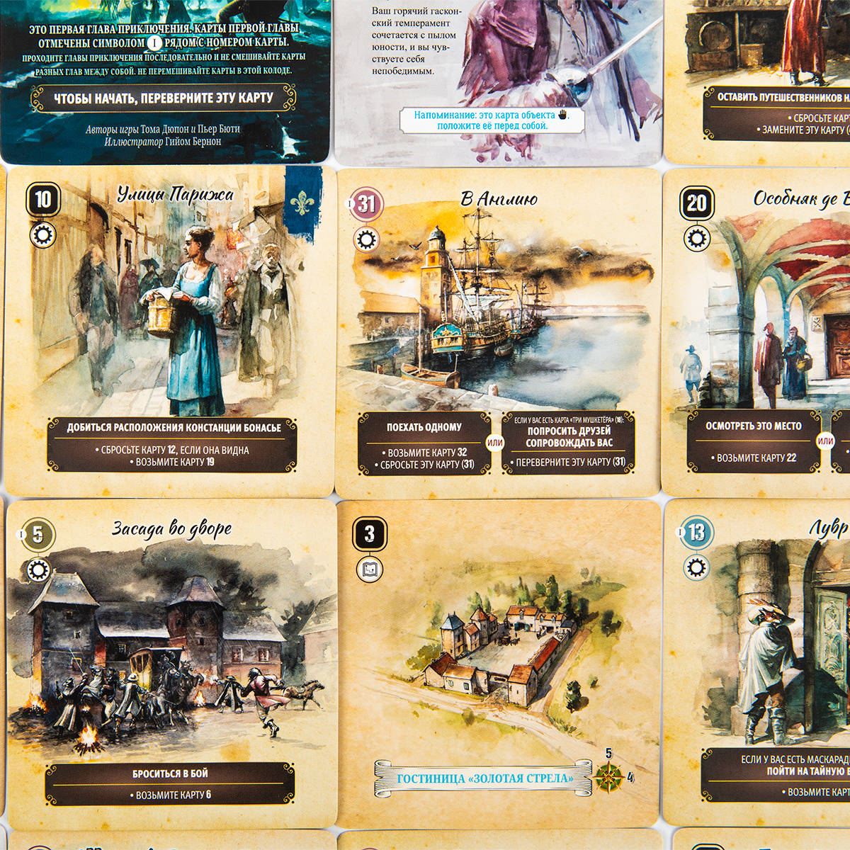 70 квадратных карт с иллюстрациями, текстом сцен и указаниями переходов