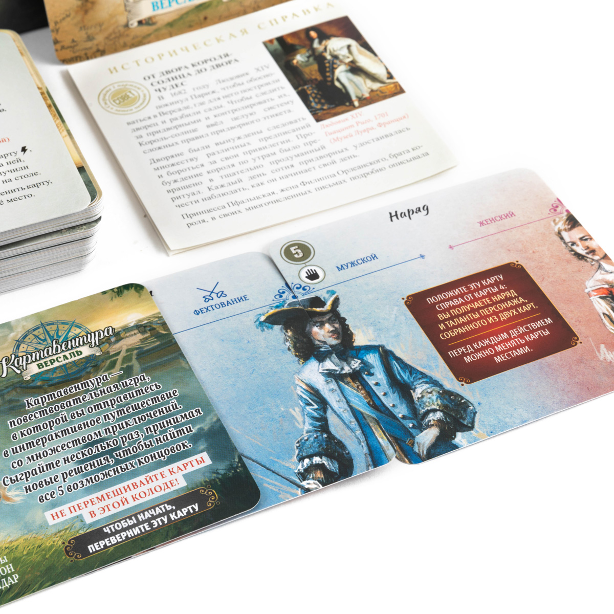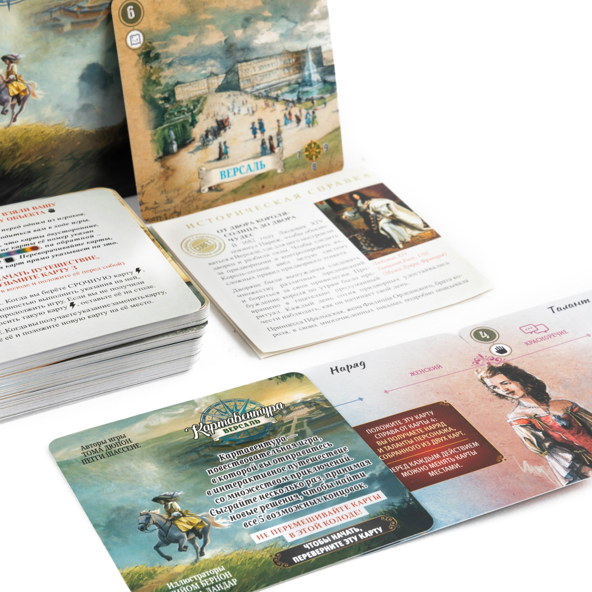 «Картавентура. Версаль» — настольная повествовательная игра из серии «Картавентура». Откройте коробку игры и окажитесь во Франции конца XVII века при дворе самого Людовика XIV.