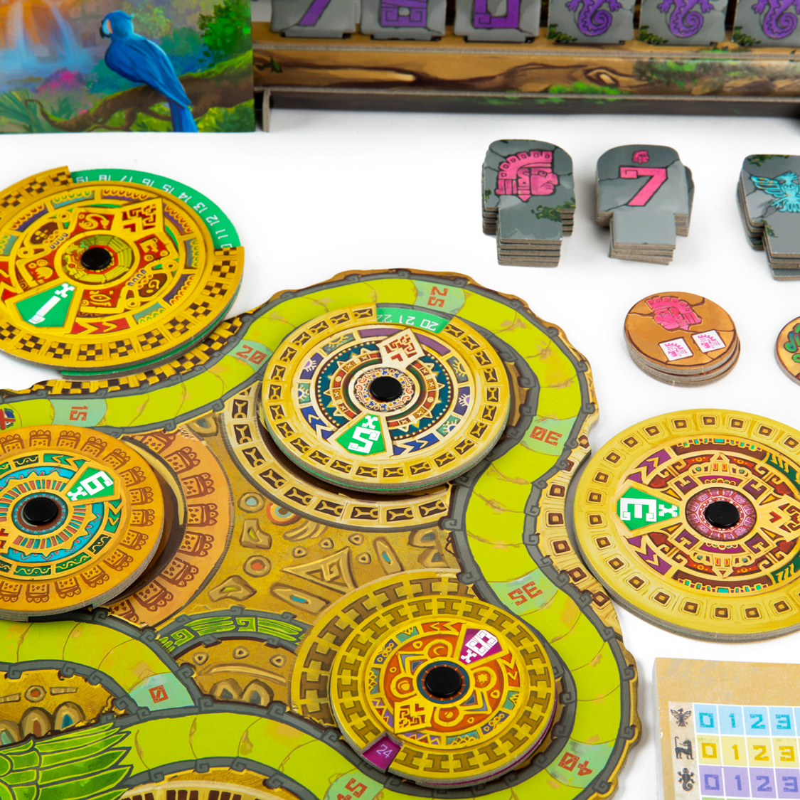 Каждому игроку выдаётся сборная подставка и набор жетонов камней. Камни перемешиваются и расставляются на подставке числовой стороной от игрока: вы знаете только цвета и позиции, но не видите сами цифры. Зато отлично различаете комбинации на подставках соперников – именно это и станет основой для логических выводов. На стол выкладывается игровое поле с треком очков и специальными зонами для поворотных дисков, а также блокнот, куда каждый будет записывать свои предположения.