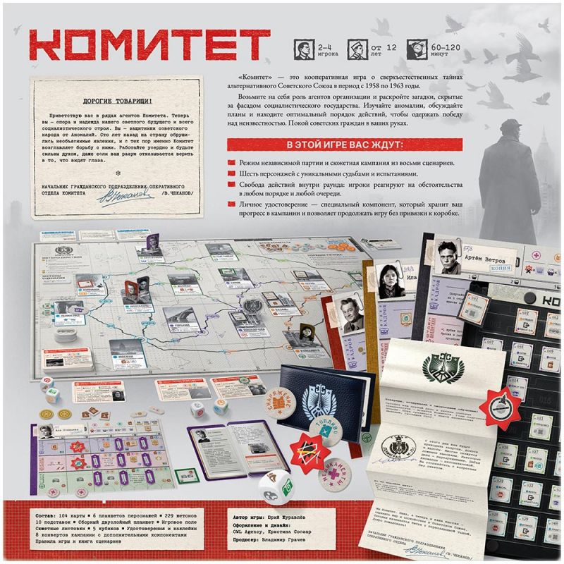 «Комитет» – кооперативная сюжетная игра в жанре америтреш, которая переносит игроков в альтернативный Советский Союз конца 50‑х – начала 60‑х годов. За фасадом привычной социалистической действительности скрываются аномалии, необъяснимые происшествия и силы, угрожающие безопасности граждан и самой реальности. Вы возьмёте на себя роль агентов секретной организации, известной как Комитет, и попробуете удержать хрупкий баланс между официальной картиной мира и тем, что творится в тени.