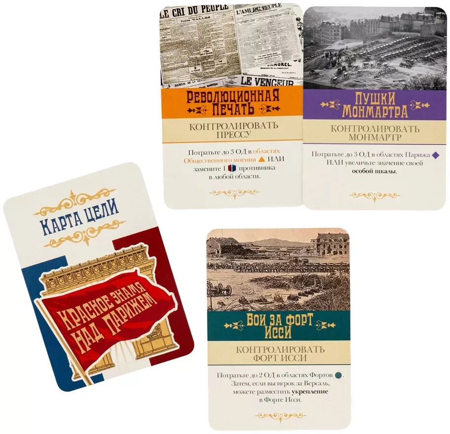 Важная особенность игры — асимметрия фракций. Стороны начинают в разных условиях, по-разному взаимодействуют с зонами карты и даже имеют ограничения по доступу к отдельным областям: на некоторые участки, подконтрольные правительству, коммунарам попасть нельзя. Отличаются и акценты в способах набора очков: революционеры стремятся усиливать политические позиции, а Версаль — добиваться военного превосходства. Всё это заставляет игроков применять разные подходы к управлению колодой и контролю карты, подстраиваясь под сильные и слабые стороны своей фракции.