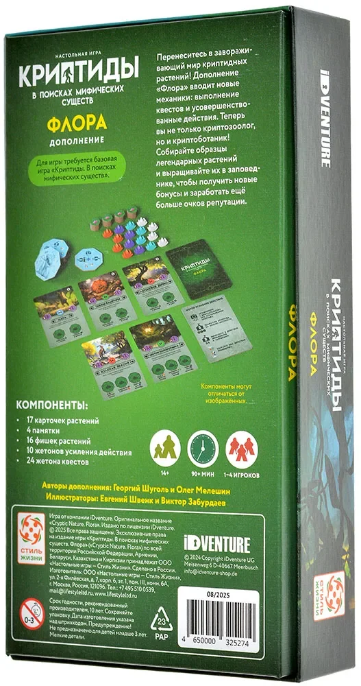 Игра по‑прежнему рассчитана на 1–4 игроков от 14 лет и сохраняет заявленную продолжительность от 90 минут, так как «Флора» расширяет, но не укорачивает и не растягивает базовый тайминг. Для соло‑игроков это приятная возможность подправить повторяемость партий: растения и их квесты делают кампанию по исследованию Европы и заповедника ощутимо более разнообразной. Для компаний – это ещё один повод вернуться к «Криптидам», даже если базовые задачи уже кажутся знакомыми.
