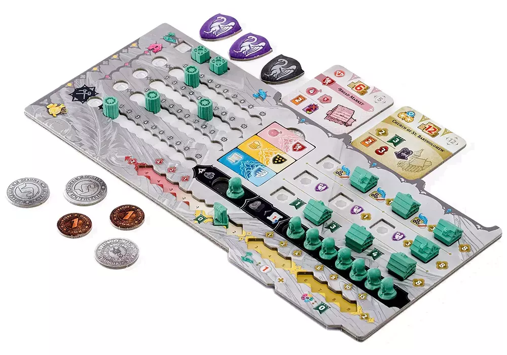 Ключевая особенность Kutna Hora – живая модель спроса и предложения. В игре есть экономические треки основных ресурсов и типов строений, и почти каждое ваше действие сдвигает цены: построенное здание может удешевить или, наоборот, подорожать соседние участки, добыча серебра влияет на стоимость руды и доходы, а развитие отдельных отраслей меняет выгодность инвестиций. Это заставляет внимательно следить не только за своим планом, но и за тем, как противники раскачивают рынок – иногда выгоднее помочь городу в целом, чтобы потом собрать дивиденды на выросшей экономике.