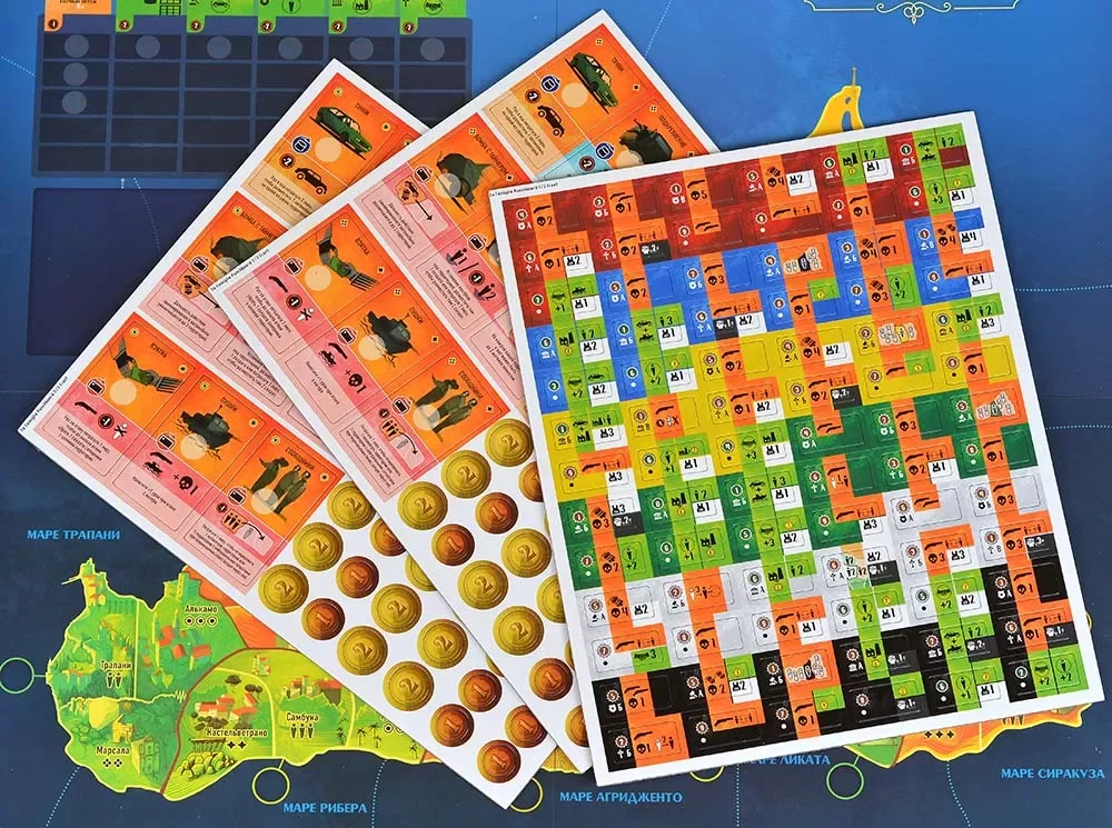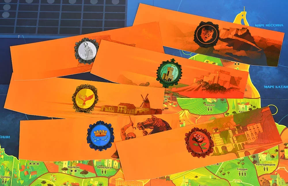 Игровое поле Сицилии с 12 мандаменто, каждый из трёх локаций.