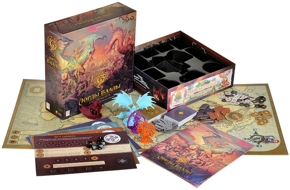 Игра рассчитана на 1–4 участников и предлагает два типа сторон: генералов и драконов. Генерал командует армией, развивает инфраструктуру, защищает земли и собирает Ваалу с территорий, используя её для усиления войск и проведения мощных действий. Дракон, напротив, — одиночная разрушительная сила: он летит по карте, сжигает поля боя, уничтожает армии и высасывает Ваалу прямо из разорённых регионов. Такая асимметрия делает партии разнообразными: вам придётся по‑разному мыслить и планировать, играя то за строителя‑командира, то за хищника‑дракона.