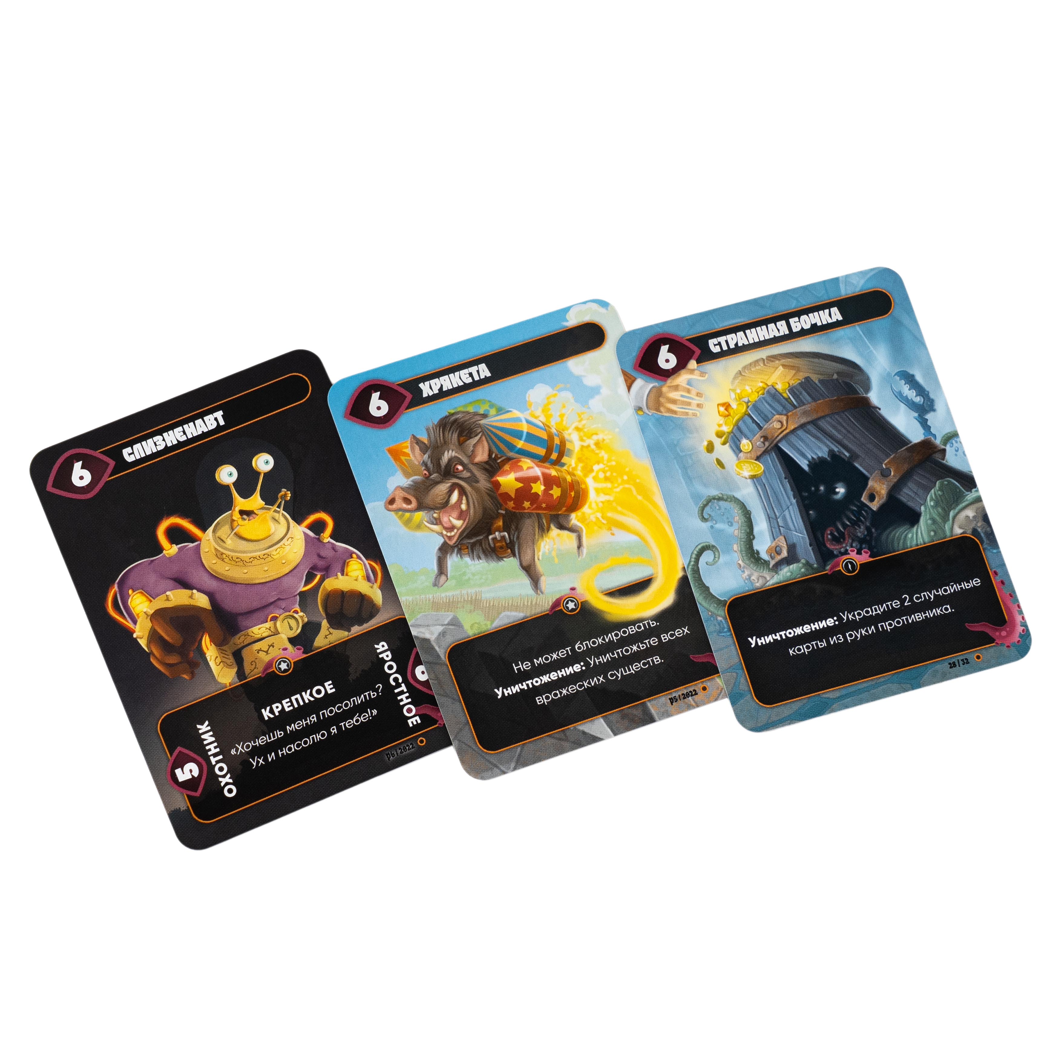 У вас есть 10 карт существ и всего 2 карты Мозгохватов. Ваша цель — снизить 3 очка здоровья соперника до нуля. Но каждое ваше действие — это риск: разыгрывая мощное существо, вы даёте противнику шанс забрать его себе и тут же использовать против вас.