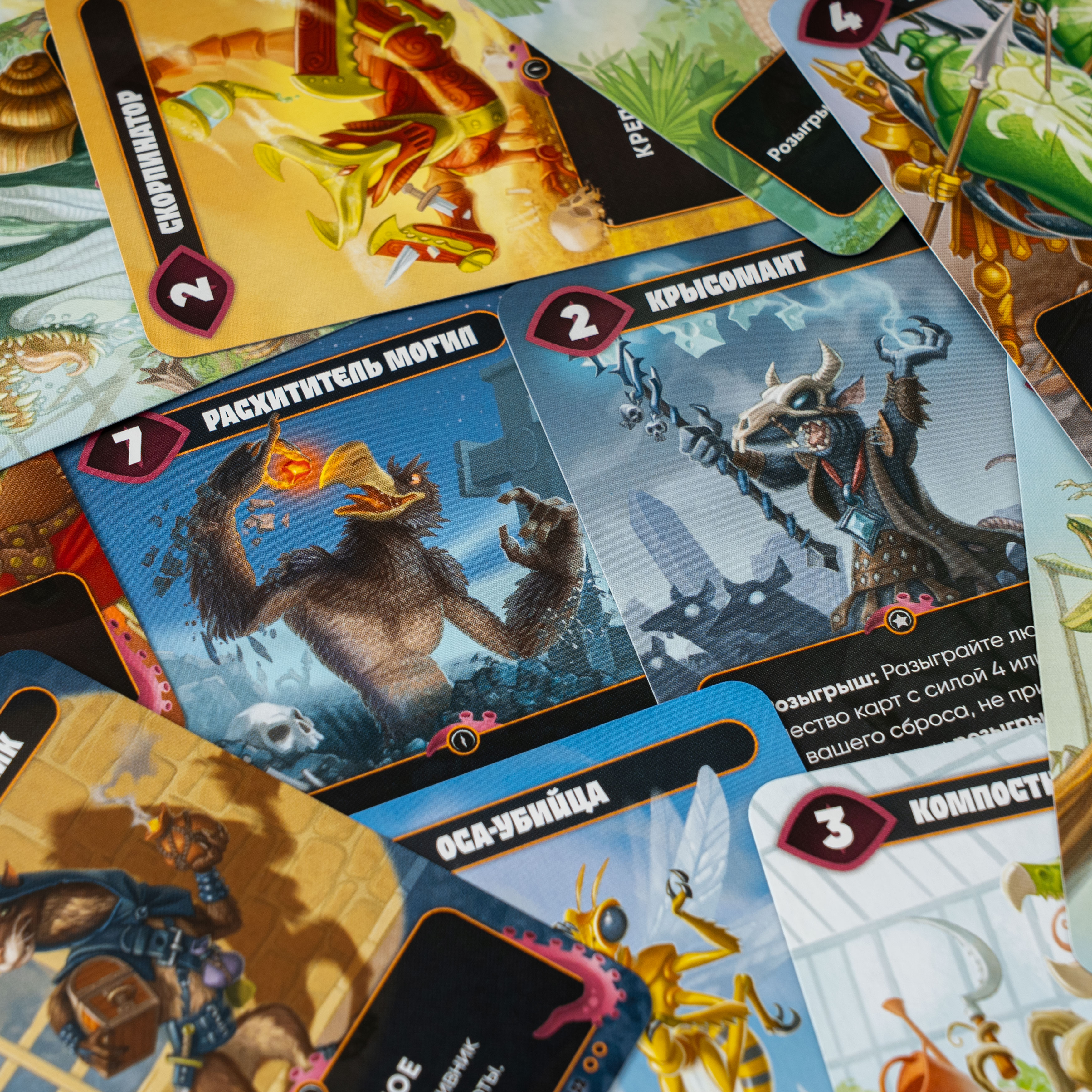 Сразитесь с помощью Снайпелеона, Собакулы, Жукощитов и Жабомбы! Каждое существо обладает особыми свойствами: Ядовитое, Охотящееся, Яростное, Крепкое или Скрытное. Комбинируйте их способности, чтобы создать непобедимую тактику. Пока ваш план не разрушит один удачный Мозгохват.