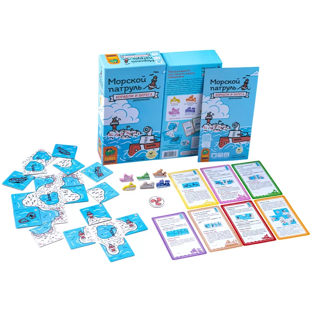 «Морской патруль. Корабли и берега» — дополнение к кооперативной игре «Морской патруль» (Beacon Patrol), которое делает знакомое патрулирование побережья Северного моря ещё более тактическим и разнообразным. Если базовая игра уже понравилась за спокойное совместное строительство карты и простые правила, этот набор добавит новые роли, особенности маршрутов и неожиданные способы набора очков.