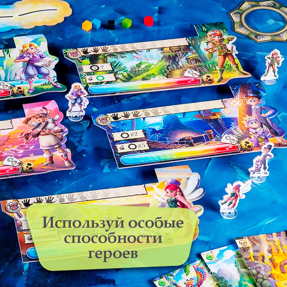 Для этого вы будете давать подсказки другим игрокам с помощью карт видений. Искать детей, рисуя прямо на игровом поле с помощью стираемых маркеров и специальных приспособлений. Пользоваться личным планшетом и мини–картой со скрытой информацией, чтобы уберечь своих напарников от встречи с Капитаном Джеймсом.