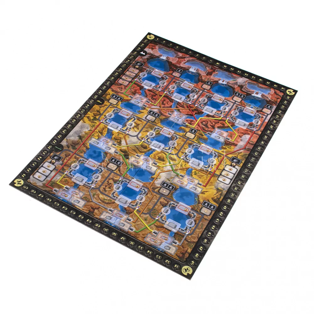 Рабочие посёлки — ещё один важный элемент дополнения. Они размещаются на специальной инфраструктуре вдоль реки и связываются мостами, формируя сеть возможных маршрутов к новым ячейкам действий. Эти области действий располагаются в горах, на холмах и у подножия, и каждая даёт свои типы бонусов и эффектов при размещении рабочих. Стоимость их активации зависит от того, насколько удачно вы проложили мосты и можете ли избежать «дорогих» переходов через глубокие каньоны. Таким образом, «Мосты Колорадо» добавляют в игру ещё один слой логистического планирования: теперь важно не только куда течёт вода, но и как рабочие добираются до нужных зон.