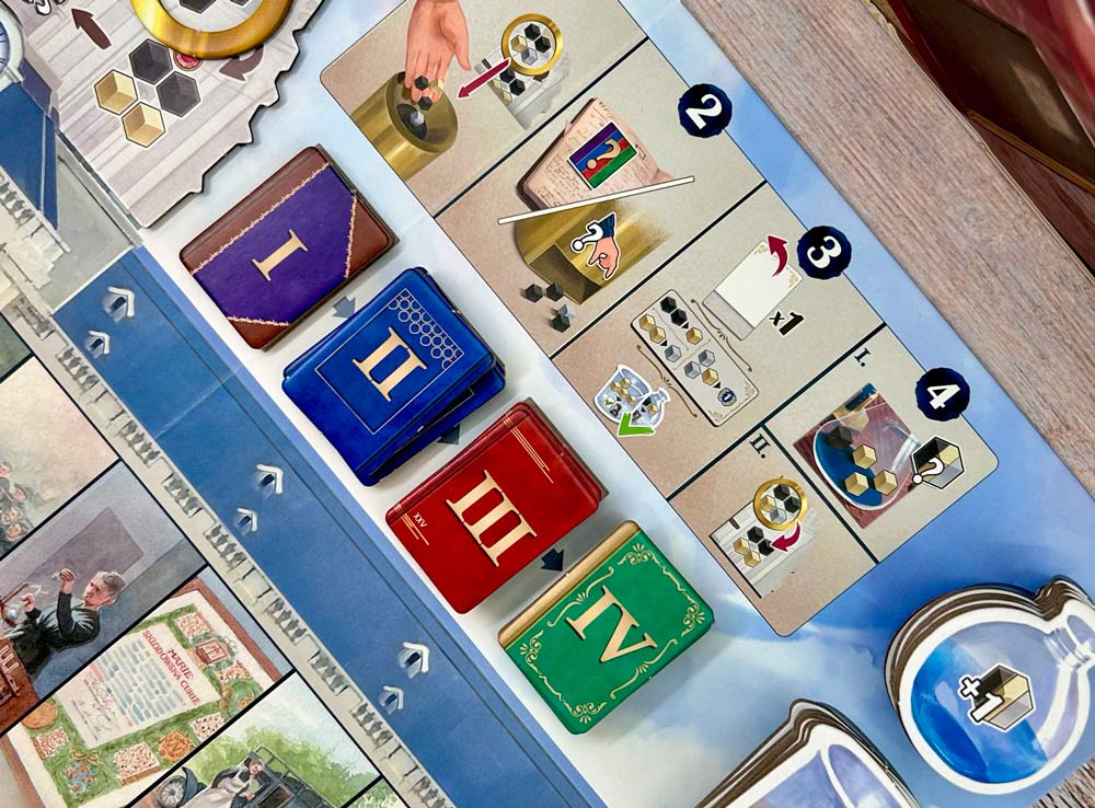 - Проведение экспериментов — преобразование ресурсов и активация жетонов