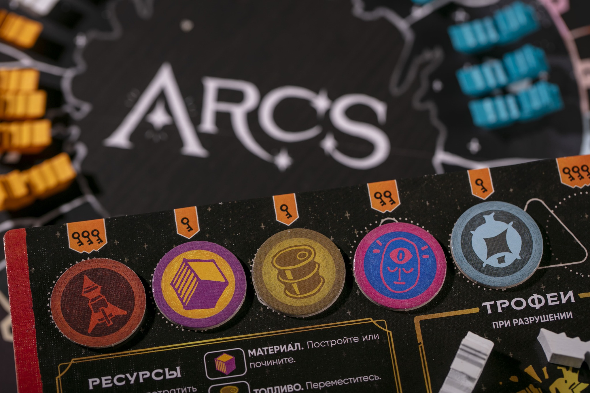 • 25 жетонов ресурсов (по 5 жетонов пяти типов)