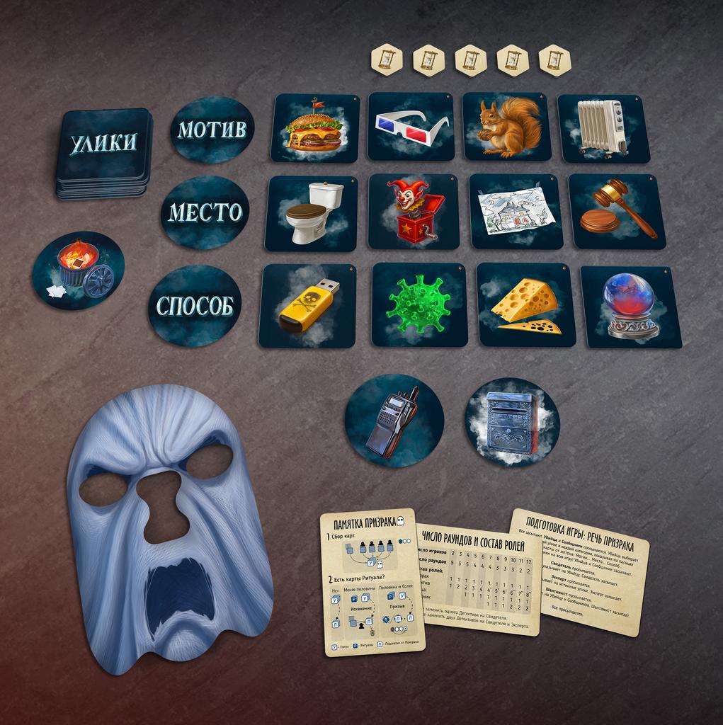 Маска Призрака – надевается игроком в роли Призрака, чтобы скрывать реакции на обсуждение подсказок.