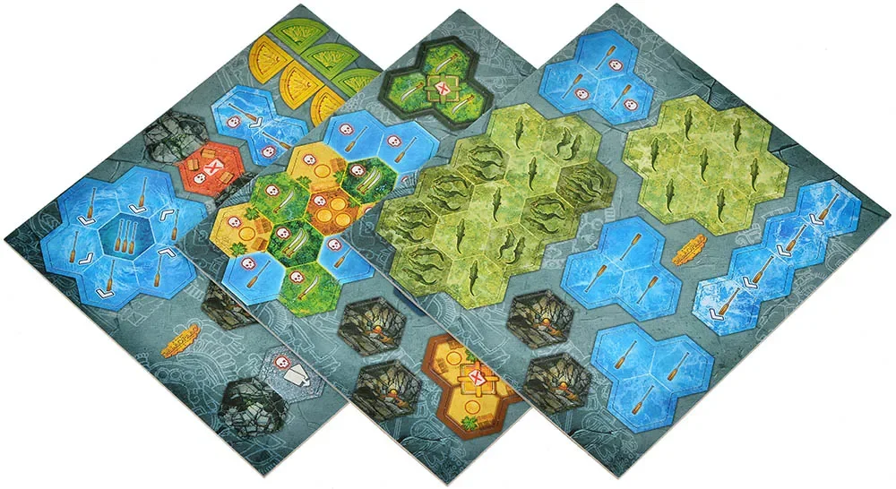 Модуль «Опасности» добавляет в игру новые участки маршрута и препятствия. Появляются клетки с крокодилами, стремнинами и особые храмы, которые связаны с ключами к воротам Золотого города. Эти элементы могут усложнять проход, заставляя игроков искать обходные пути, вовремя разыгрывать нужные карты и внимательно следить за позициями соперников, чтобы не застрять в опасной зоне в самый ответственный момент. Дополнительные тайлы можно включать по одному или комбинировать сразу несколько вариантов, подстраивая уровень сложности маршрута под свой игровой стол.