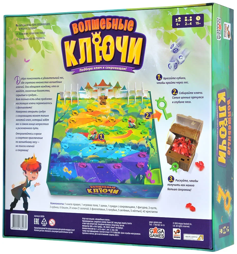 «Волшебные ключи» (Magic Keys) — яркая семейная игра‑бродилка, в которой игроки отправляются по тропинкам Волшебного леса на поиски ключей от сундука с сокровищами. Это простая по правилам, но очень эмоциональная настолка с объёмным полем, настоящим сундуком и россыпью пластиковых кристаллов, отмеченная несколькими крупнейшими международными премиями как одна из лучших детских игр последних лет.