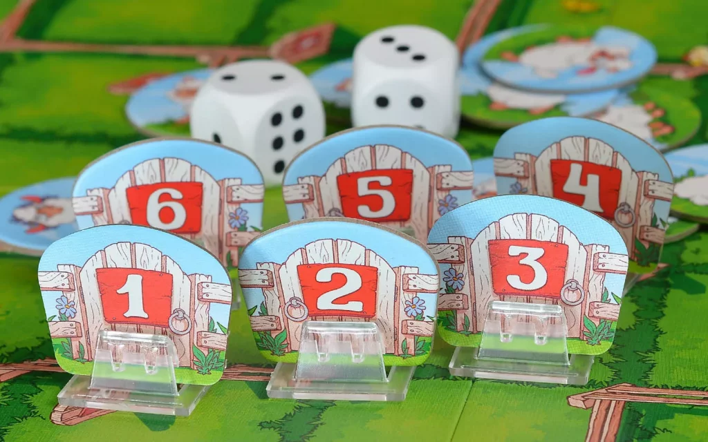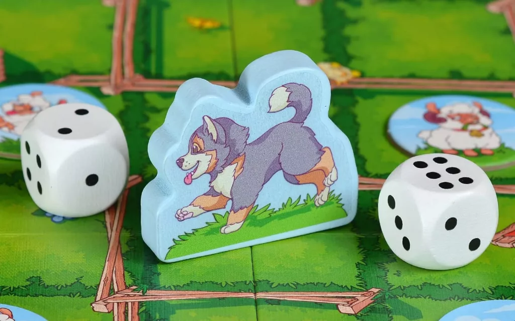 Если бордер‑колли останавливается на клетке с жетоном овечки, жетон забирается — это шаг к общей победе. Но не всё так просто: когда на кубиках выпадают одинаковые числа, собачка не двигается, вместо этого игроки меняют положение калиток с тем же значением — открывают одни проходы и закрывают другие. Так поле постоянно меняется, вынуждая команду перестраивать план и искать новые пути к оставшимся овечкам.​