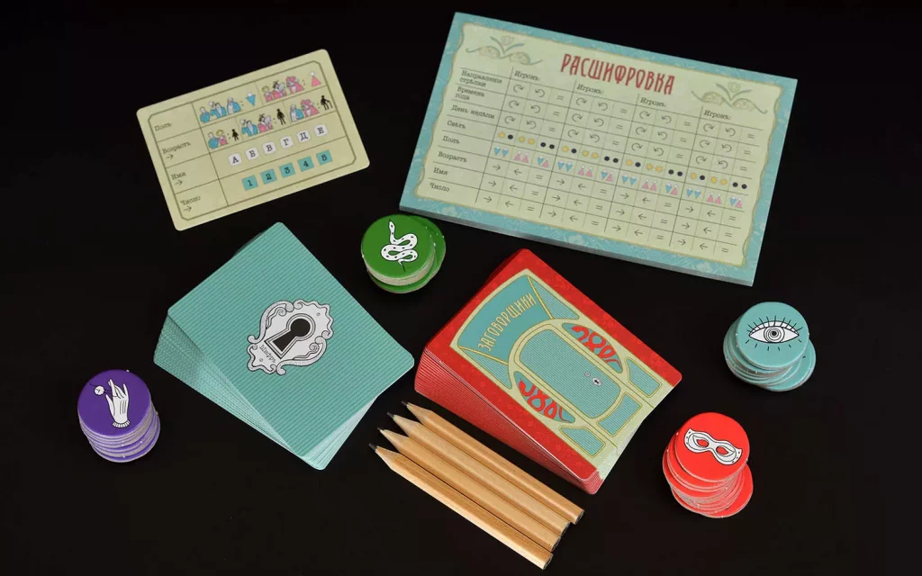 • Карты шифров (16 шт.) — индивидуальные комбинации правил изменения признаков между соседними картами, которые нужно разгадать.​